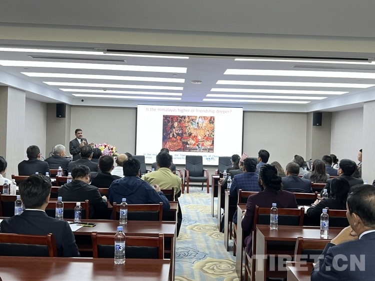 中國(guó)西藏網(wǎng)訊 由國(guó)家商務(wù)部培訓(xùn)中心主辦、西藏大學(xué)承辦、西藏善緣基金會(huì)協(xié)辦的“中國(guó)—尼泊爾跨境經(jīng)濟(jì)合作智庫(kù)和專家研修班”于9月30日—10月7日在拉薩舉行,并于10月7日在西藏賓館舉行“跨越喜馬拉雅,共話民間友好——杜鵑花盛開的國(guó)度”專題研討和聯(lián)誼活動(dòng)。研修班全體學(xué)員及西藏大學(xué)、西藏善緣基金會(huì)、尼泊爾中國(guó)凱拉斯文化促進(jìn)會(huì)部分來(lái)賓參加研討會(huì)和聯(lián)誼活動(dòng)。