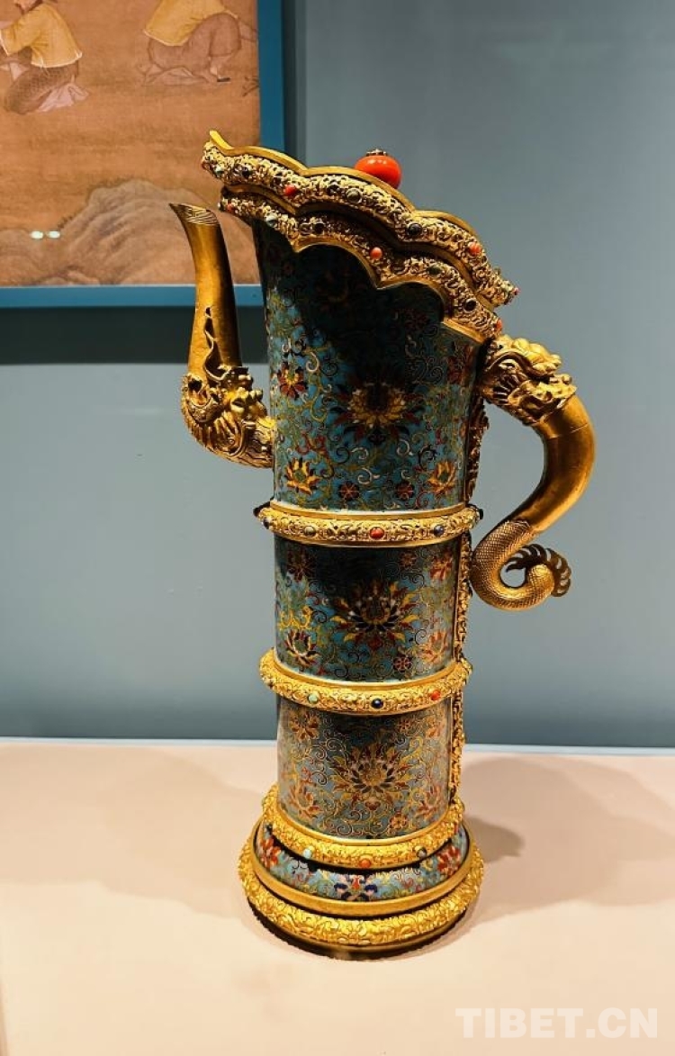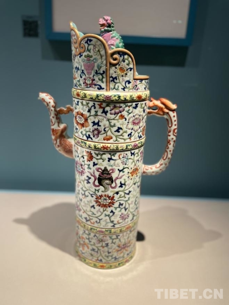 多穆壺是蒙、藏、滿等民族盛裝奶茶或熬制酥油茶的器皿,多穆為藏語發(fā)音,即奶茶壺之意。其形制各異、材質(zhì)有別,功用亦不相同。自康熙時期開始,清宮便制作有木質(zhì)、琺瑯、漆器、瓷器等各種材質(zhì)的多穆壺。故宮博物院收藏的粉彩八吉祥纏枝蓮紋多穆壺、銅胎掐絲琺瑯勾蓮紋多穆壺、紫漆描金纏枝蓮紋皮胎多穆壺等。精美的器具和醇香的奶茶一道構(gòu)成了清代宮廷獨(dú)特的奶茶文化。