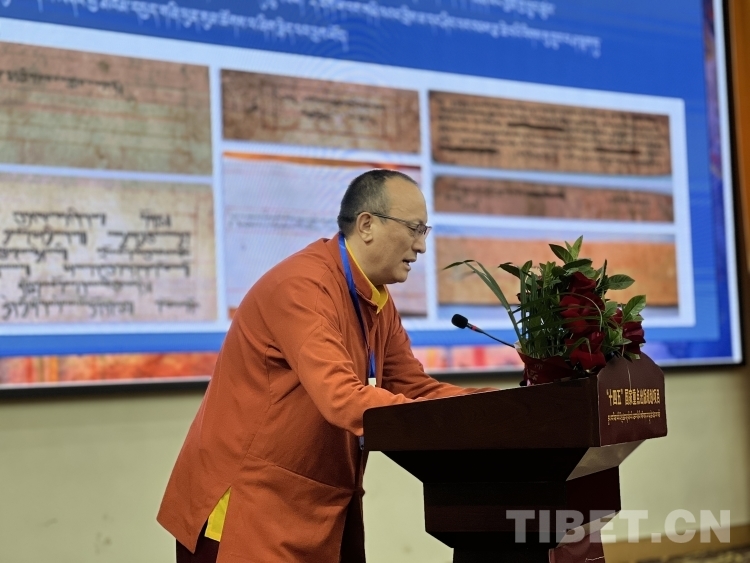 圖為中國中醫(yī)科學(xué)院學(xué)部委,國醫(yī)大師,西藏藏醫(yī)藥大學(xué)教授、博士生導(dǎo)師,西藏藏醫(yī)藥大學(xué)附屬醫(yī)院主任醫(yī)師旺堆講話 攝影:貢嘎來松