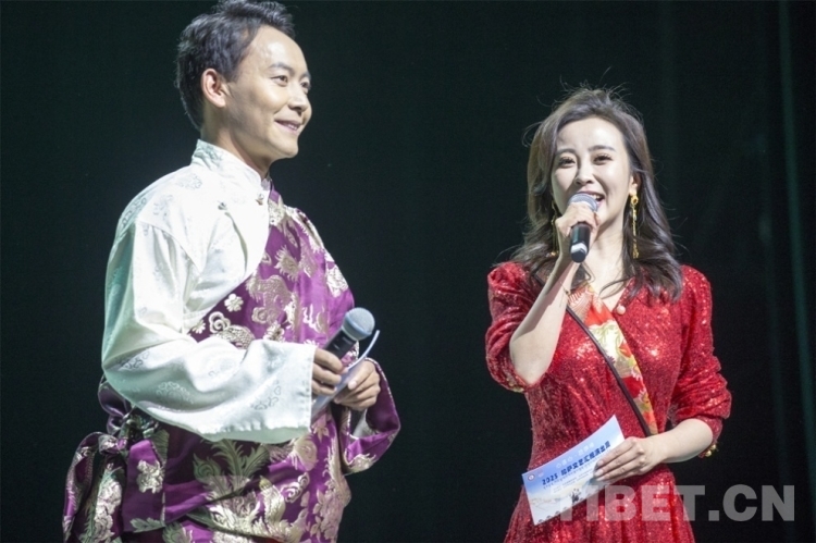 圖為《拉薩情》文藝匯演現(xiàn)場(chǎng)主持人開(kāi)場(chǎng) 攝影:楊月云