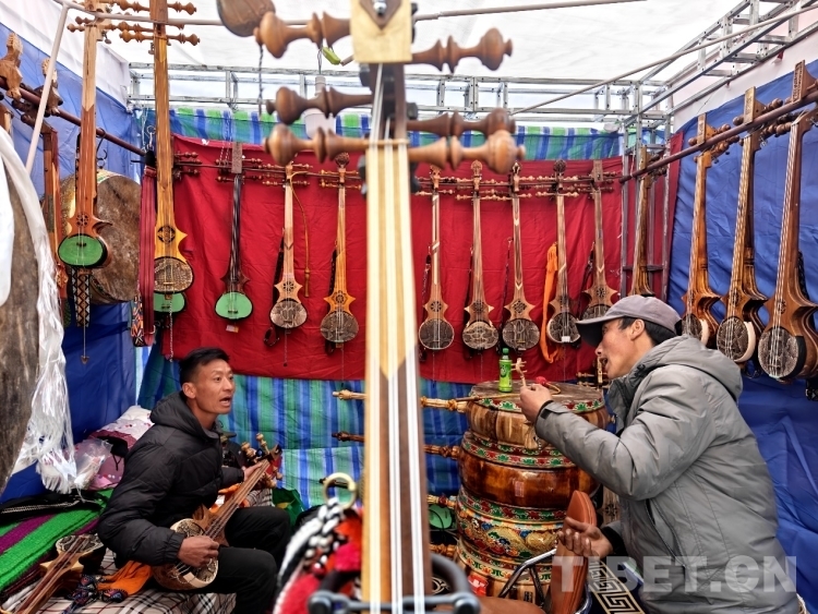 “參加雅礱物交會是扎念琴銷售的重要渠道,上一屆雅礱物交會,會期還沒結(jié)束帶的產(chǎn)品都賣光了,所以這次特意提前準(zhǔn)備、多備了一些貨品,相信會賣得很好?!苯衲?6歲的次仁多吉是山南市加查縣人,17歲時,次仁多吉開始跟隨父親學(xué)習(xí)扎念制作技術(shù),如今能夠熟練制作扎念琴。在他的攤位上,悠揚的的扎念琴聲不斷傳出,吸引了不少逛展群眾駐足,他也會熱情邀請群眾體驗扎念琴彈奏并簡單介紹構(gòu)造等希望扎念琴文化推廣得更遠。
