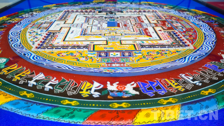 圖為陳列在日喀則市珠峰文創(chuàng)園區(qū)非物質文化遺產(chǎn)展示中心的彩砂壇城 攝影:王淑
