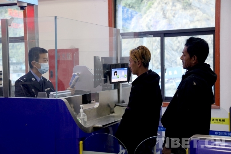 圖為聶拉木邊檢站民警對出入境人員進(jìn)行驗(yàn)放 攝影:鄒興國