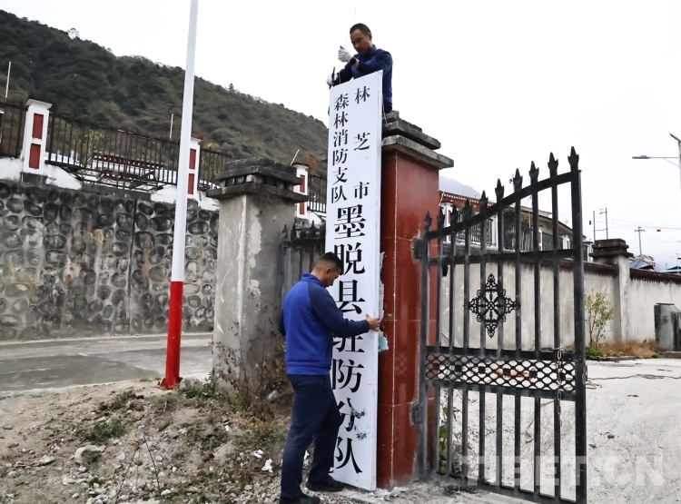 圖為指戰(zhàn)員正在懸掛牌匾。攝影:趙健宇