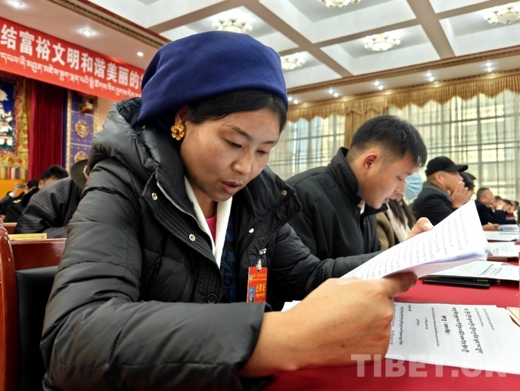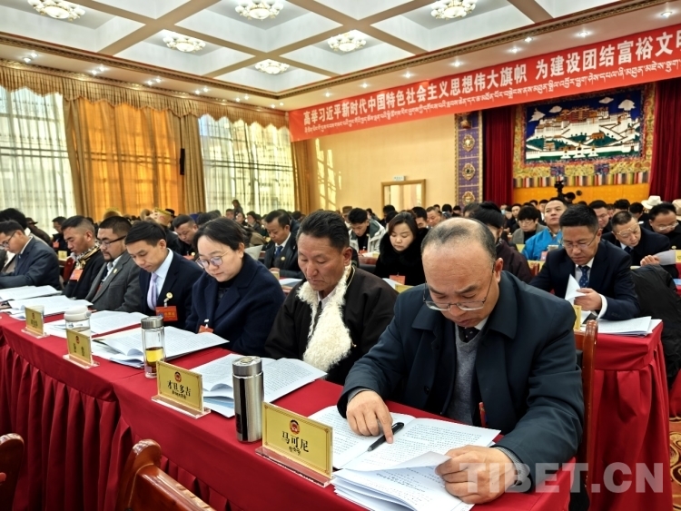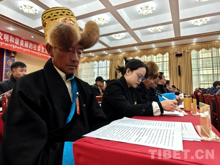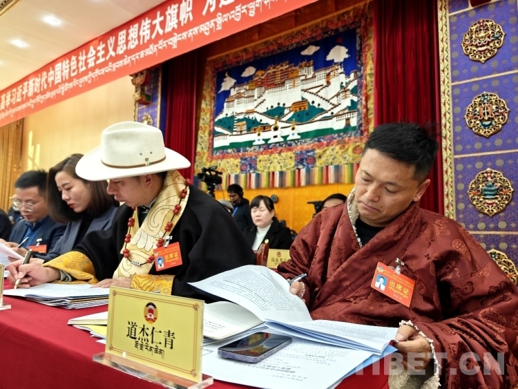 圖為政協(xié)委員認(rèn)真審閱會(huì)議資料 攝影:次旦拉姆