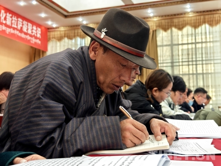 圖為開幕會(huì)現(xiàn)場(chǎng)政協(xié)委員認(rèn)真做著筆記 攝影:次旦拉姆
