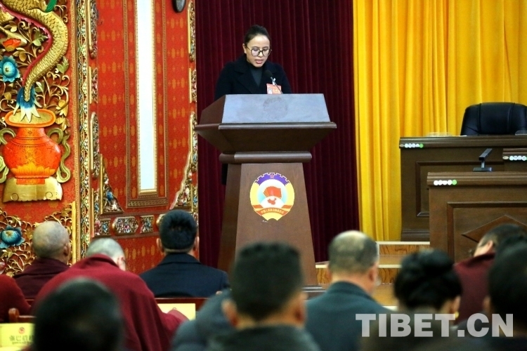 圖為強(qiáng)巴措珍在拉薩市政協(xié)第十二屆四次會(huì)議第二次全體會(huì)議上發(fā)言 攝影:王佳豪