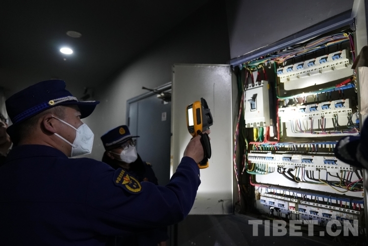 圖為消防監(jiān)督員正在對配電柜進(jìn)行溫度測量