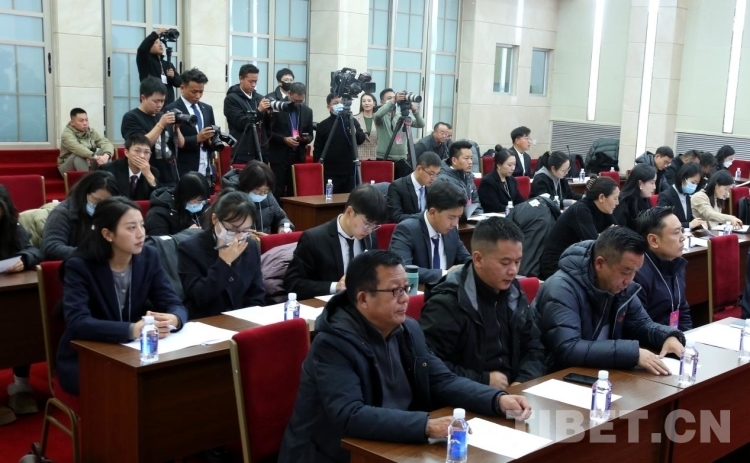 圖為中央駐藏媒體及西藏自治區(qū)媒體代表在會上認真聽取新聞發(fā)言人通報相關(guān)情況 攝影:王佳豪
