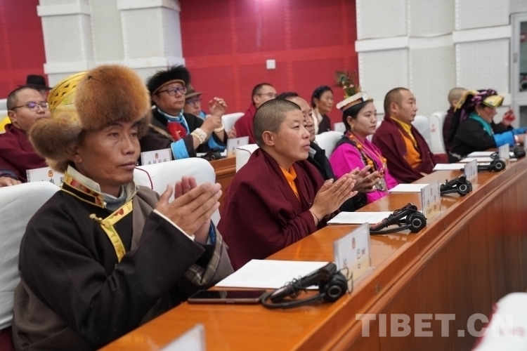 圖為開幕會現(xiàn)場政協(xié)委員在認真聽取各項報告 攝影:次旦拉姆