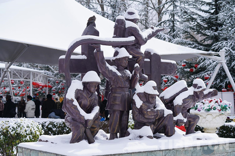 圖為雪中的西藏和平解放紀念碑 攝影:趙振宇