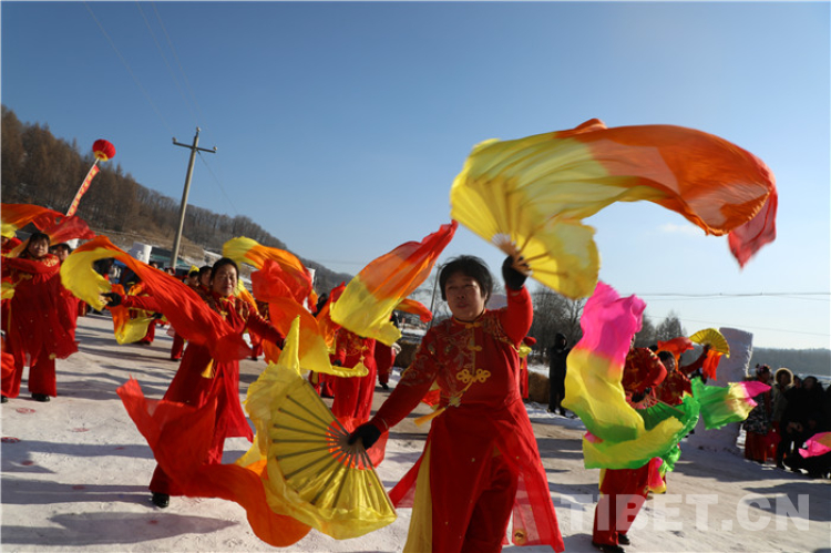 滿是積雪的雪原鄉(xiāng)村煥然一新,整整齊齊的迎賓雪人站立路旁,彩旗迎風(fēng)招展,紅彤彤的燈籠飄在空中,遠(yuǎn)遠(yuǎn)就看到東北大秧歌熱情地在村子的街道上舞動(dòng)。