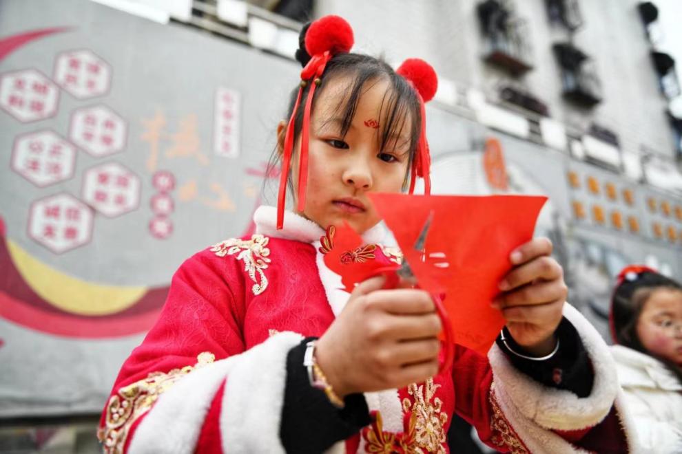 圖為剪窗花 圖片來源:人民網(wǎng)