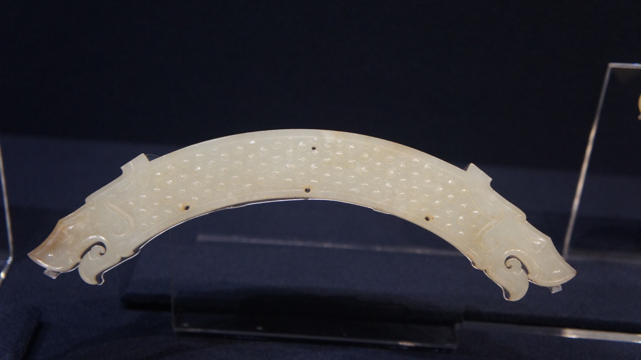 圖為玉文化催生龍文化的實(shí)物見(jiàn)證:戰(zhàn)國(guó)雙龍首形玉璜,玉璜代表天地溝通之彩虹橋