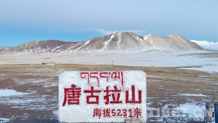 標(biāo)記唐古拉山海拔5231米的石碑。陳明 攝