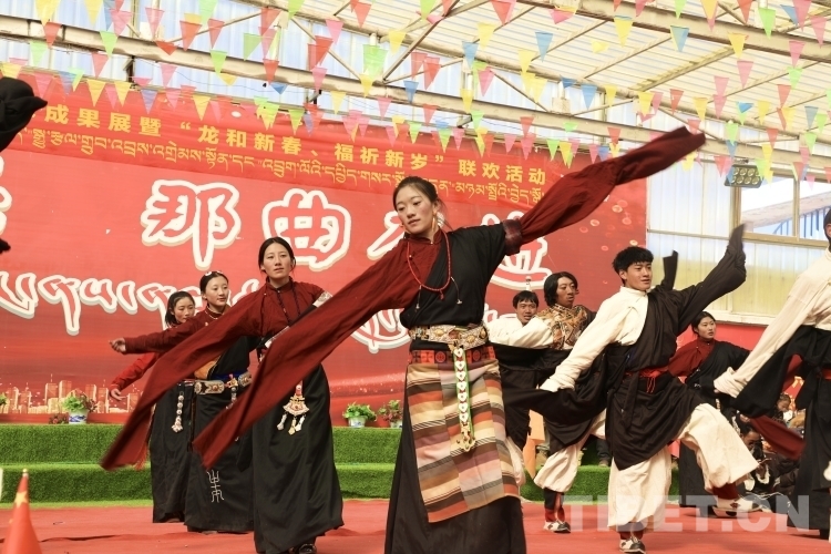 今年春節(jié)和藏歷新年期間,安多縣灘堆鄉(xiāng)為感激黨和國家的關(guān)心關(guān)懷,歌頌來之不易的幸福生活,鄉(xiāng)村文藝隊精心準(zhǔn)備了精彩紛呈的文藝節(jié)目,以嶄新的面貌和昂揚(yáng)的精神展現(xiàn)新時代牧民群眾的精神風(fēng)貌和幸福生活,舉辦了“鄉(xiāng)村振興 那曲奮進(jìn)”藝術(shù)成果暨“龍和新年 福祈新歲”慶兩節(jié)聯(lián)歡活動。在當(dāng)?shù)馗刹亢娃r(nóng)牧民群眾的熱情邀請下,同心·共鑄中國心志愿者一行也加入到該活動中,與200多名干部職工和牧民群眾在灘堆鄉(xiāng)文化站歡聚一堂、載歌載舞,共同歡度了一個難忘而充實的大年初一。