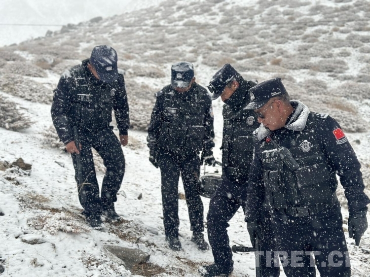 圖為斜爾瓦民警在中尼7號界樁旁巡邏踏查 攝影:格熱