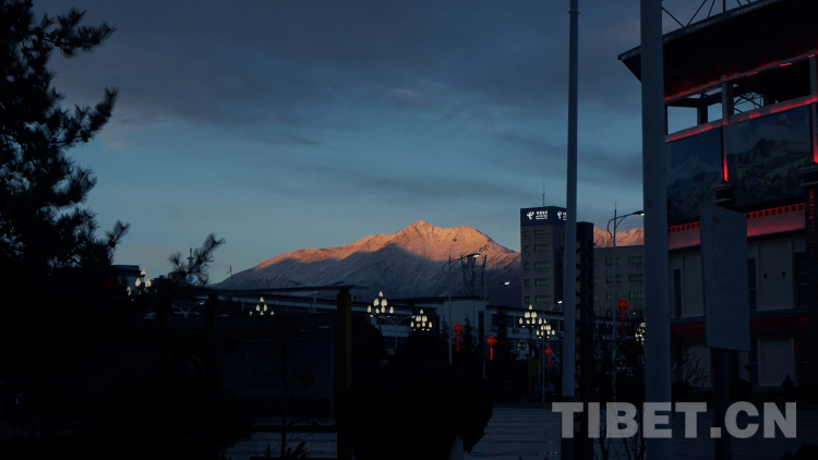 圖為山南市體育場視角的雪山 攝影:張曉琪