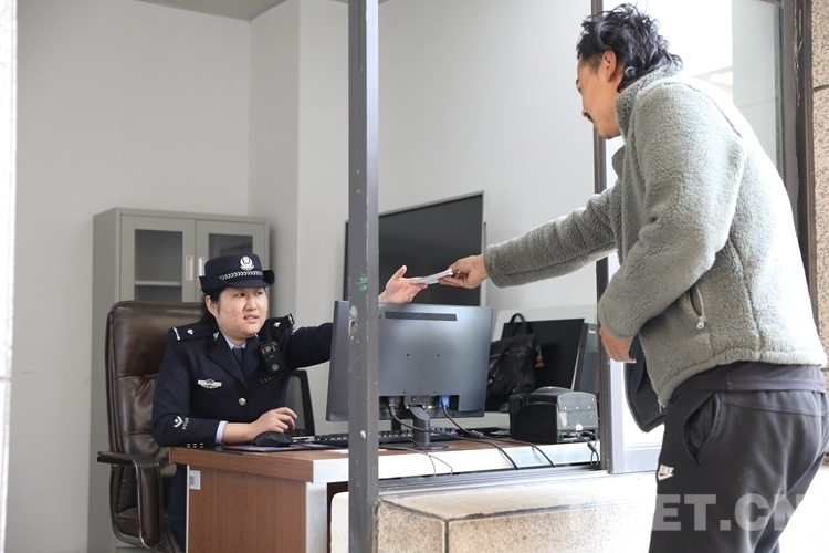 圖為吉隆口岸移民管理警察為通關貨車司乘人員辦理通關手續(xù) 攝影:肖富貴