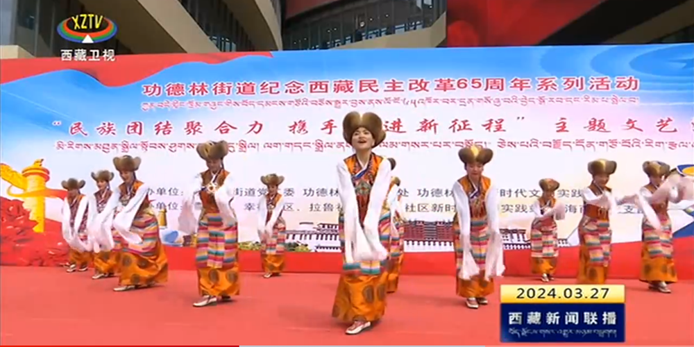 連日來,在西藏各地市,人們通過豐富多彩的活動紀念西藏民主改革65周年。拉薩市功德林街道開展的“民族團結聚合力 攜手奮進新征程”文藝匯演活動,吸引眾多市民游客駐足觀看。居民用歌聲凝聚力量,用舞姿傳遞真情,展示著新西藏各族群眾美好的幸福生活。來自西藏自治區(qū)人民醫(yī)院退休干部倉木拉說;“我們跳的是《藏家兒女心向黨》,表達著百萬翻身農(nóng)奴對黨的熱愛,感謝共產(chǎn)黨讓我們有了今天的幸福生活。在黨和國家的領導下,相信我們西藏的明天更美好。”