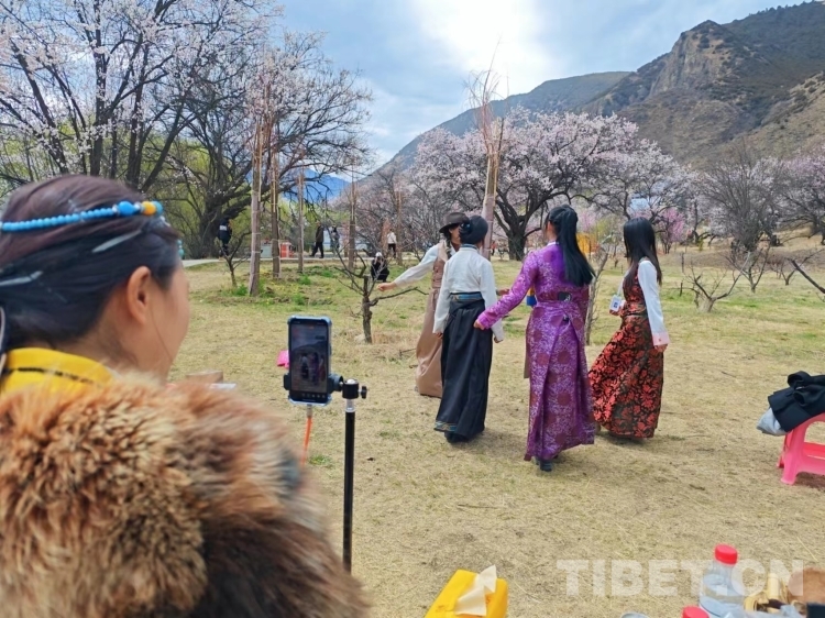 在嘎拉村桃花源內(nèi)、民族文化體驗(yàn)區(qū)、產(chǎn)品展銷點(diǎn)……都能看到林芝市職業(yè)技術(shù)學(xué)校學(xué)生們的身影。學(xué)生們走進(jìn)桃花林,以藍(lán)天白云、皚皚雪山為背景,通過直播帶全國(guó)各地的網(wǎng)友們?cè)朴瘟种ァ疤一ǖ谝淮濉?,展示著桃花灼灼盛開的美景。他們生動(dòng)的解說和精彩的直播吸引了大量觀眾“云游林芝 云賞桃花”,體驗(yàn)不一樣的桃源春色。