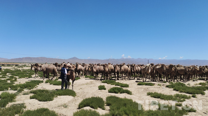 后來,我在研究駝隊(duì)歷史時(shí)了解到更多。莫河的老駝工們拉著駱駝隨駐藏部隊(duì)進(jìn)藏、護(hù)送十世班禪返藏、參加西藏運(yùn)輸總隊(duì)運(yùn)糧援藏時(shí),遇到過諸多困難。聽老輩人說,在過唐古拉山的時(shí)候,因?yàn)閲?yán)寒,有人手腳凍壞,有人凍掉耳朵,甚至連鼻子都凍壞了!可想而知,當(dāng)時(shí)的環(huán)境氣候有多惡劣。即使這樣,大家也沒有騎駱駝,因?yàn)樗鼈兊呢?fù)重本來就夠大了,為了不掉隊(duì),人們只好在體力不支的時(shí)候,牽著駱駝的尾巴,一步步向前挪動。