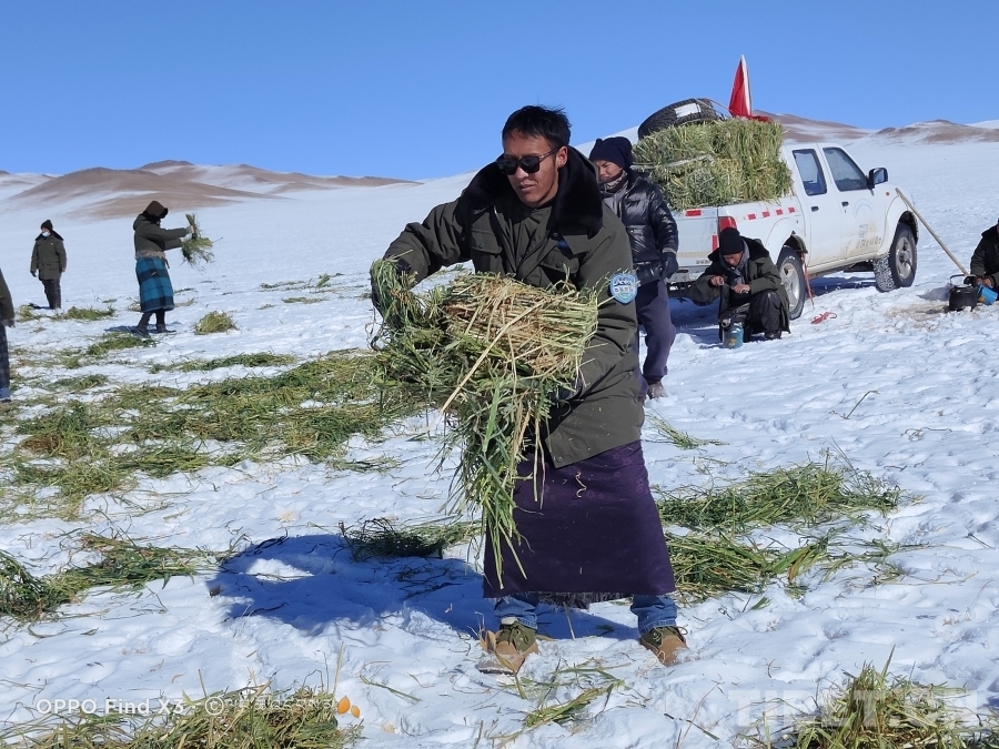 圖為贊康管理站站長邊巴給野生動(dòng)物放草(邊巴供圖)