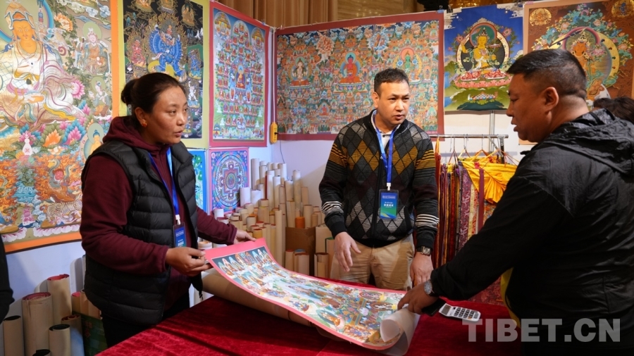 Bikram來自尼泊爾首都加德滿都,十年前來過拉薩,深深被這座城市所吸引,這次通過中外商品展銷會(huì)再次來到一直向往的拉薩,他非常開心?!拔覀兡岵礌柕氖止に嚻吩谌澜绯雒@次我們從尼泊爾帶來的有唐卡、佛像、毛毯等,都是全手工制作的,希望在此次展銷會(huì)能夠得到西藏消費(fèi)者的支持與喜愛?!?/p>