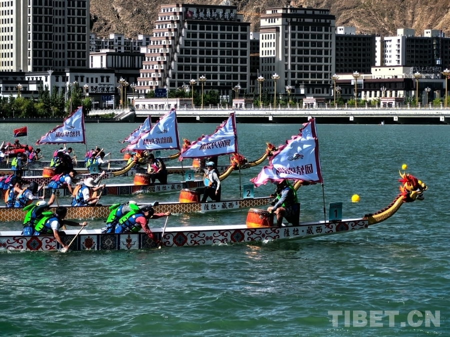 中國(guó)西藏網(wǎng)訊 6月9日,由西藏自治區(qū)體育局、拉薩市人民政府主辦的2024年西藏自治區(qū)端午節(jié)牛皮船(龍舟)賽在拉薩市金珠東路濱河公園水域開(kāi)賽。
