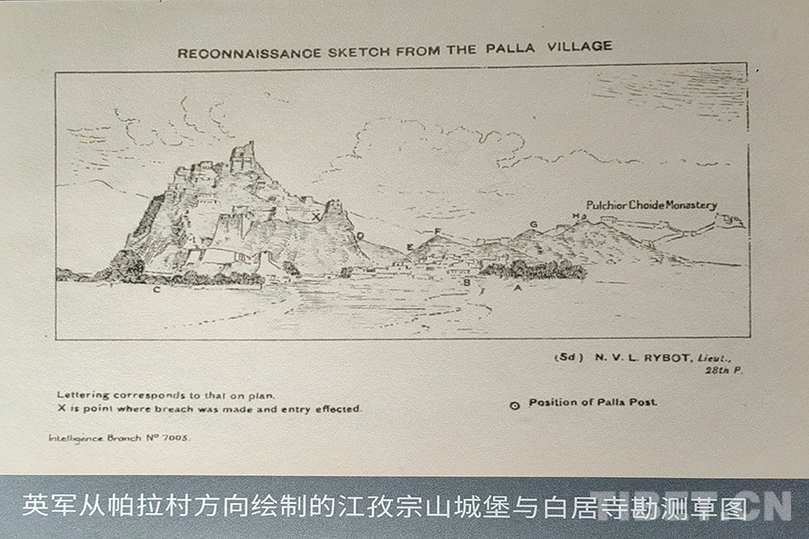 圖為英軍繪制的勘測草圖,拍攝于紀(jì)念西藏江孜抗英保衛(wèi)戰(zhàn)120周年主題展 攝影:楊月云