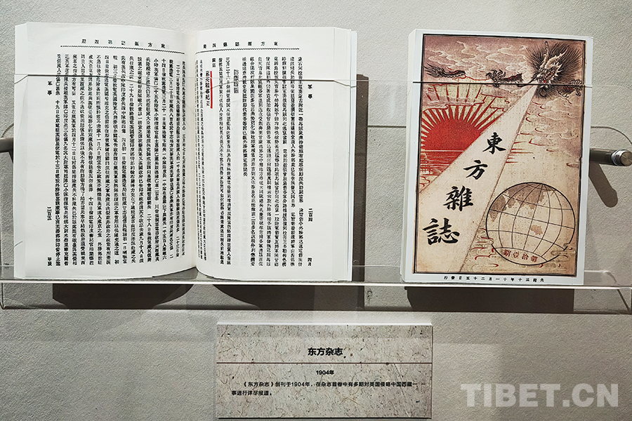 圖為創(chuàng)刊于1904年的《東方雜志》,雜志首卷對英國侵略西藏一事進(jìn)行了詳盡報道。拍攝于紀(jì)念西藏江孜抗英保衛(wèi)戰(zhàn)120周年主題展 攝影:楊月云