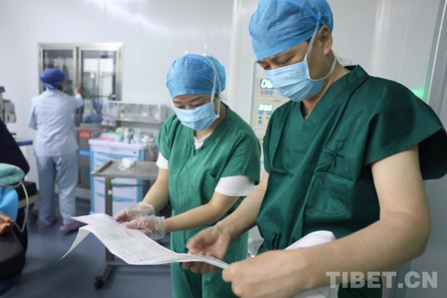 7月9日,參與2024“同心·共鑄中國心”甘孜行大型公益活動的北京醫(yī)療專家團隊,在四川省甘孜藏族自治州甘孜縣人民醫(yī)院,為當(dāng)?shù)鼗颊邔嵤┝烁唠y度的治療手術(shù),為臨產(chǎn)孕婦接生。