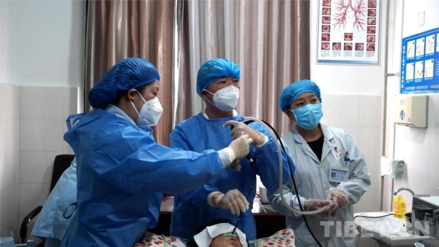 航空總醫(yī)院呼吸科陳乾華主任帶領(lǐng)甘孜縣人民醫(yī)院呼吸科團隊,共同為患者進(jìn)行了一場精細(xì)而復(fù)雜的治療。在高清影像的引導(dǎo)下,陳主任將呼吸鏡送入患者體內(nèi),對病灶進(jìn)行了精準(zhǔn)定位和治療。治療過程中,陳主任還耐心地向當(dāng)?shù)蒯t(yī)護人員傳授呼吸鏡介入治療的操作要點和注意事項。