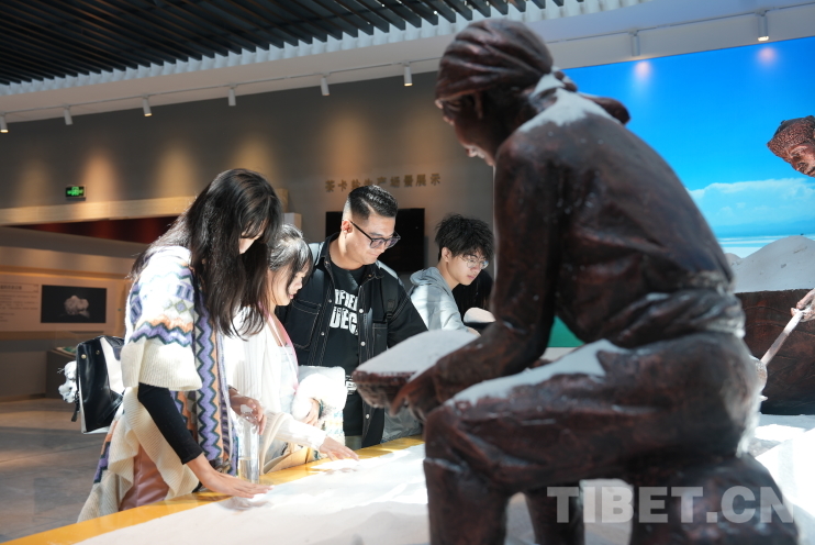 “茶卡”是藏語,意即鹽池。鹽是我們生活中最為常見之物,但直到來到茶卡鹽湖文化館,這些青少年們才發(fā)現(xiàn)自己所知有限。他們這才了解到,鹽這一日常餐桌上的尋常之物,其背后竟藏著一個(gè)多彩而豐富的世界。除我們熟悉的海鹽、湖鹽之外,巖鹽的堅(jiān)硬、井鹽的深邃、竹鹽的清新,都以各異的姿態(tài)和色彩展現(xiàn)著自然界的奇妙多樣性。鹽的妙用也遠(yuǎn)不止調(diào)味,還有清潔、消腫等多種功效。何莉莉聯(lián)想到自己生物課上所學(xué):“鹽里含有的多種氨基酸和微量元素,都是我們身體所需,對(duì)人類真的很重要。”
