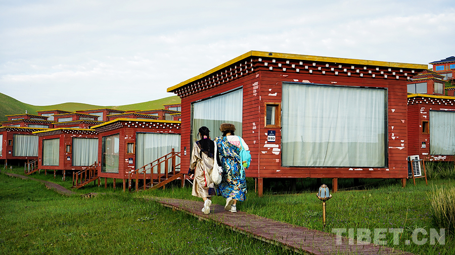 圖為兩名身著藏裝的香港學生準備回到文迦牧場的小木屋中。攝影:李泓慶