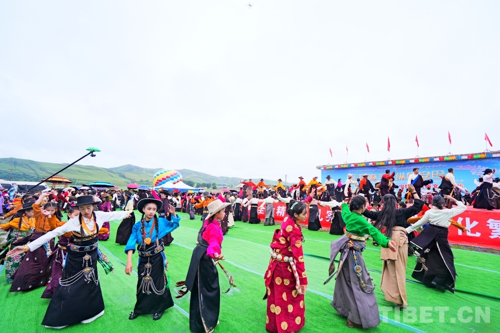 一場(chǎng)傳統(tǒng)的祈福儀式拉開活動(dòng)的序幕。身著盛裝的騎手擎著彩旗,策馬轉(zhuǎn)繞祈福的煨桑臺(tái),共同祝愿祖國(guó)繁榮昌盛,祝福家鄉(xiāng)安定祥和,各族人民團(tuán)結(jié)進(jìn)步。少兒服飾隊(duì)和300名當(dāng)?shù)厝罕娛峙豕_(dá)悉數(shù)亮相在舞臺(tái)前,向四方來(lái)客表示誠(chéng)摯歡迎?!百愸R”“吉祥大鍋莊”等民族歌舞精彩上演,游客也加入其中跳起團(tuán)結(jié)鍋莊,盡享盛夏安巴之樂。