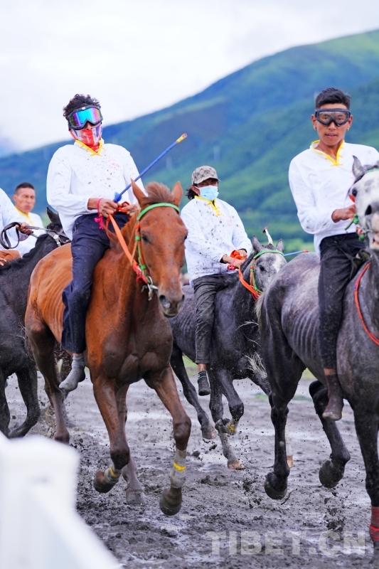 賽馬場(chǎng)上,開賽鈴響后,騎手們駕馭著馬匹如離弦之箭沖出起點(diǎn),伴隨著騎手的吆喝聲,策馬揚(yáng)鞭,駿馬奔騰,你追我趕,賽道塵土飛揚(yáng),馬背上的速度與激情精彩上演。賽馬場(chǎng)外,大象拔河、朵加(抱石頭)、客有曲通(馬鞍倒立)等民俗活動(dòng)你方唱罷我登場(chǎng),吶喊聲、助威聲此起彼伏。
