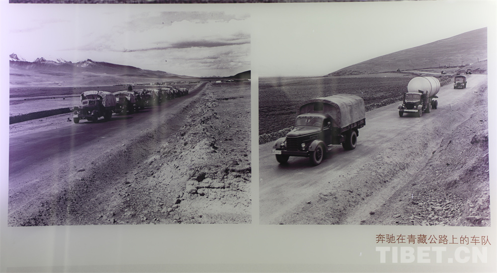 圖為老照片中奔馳在青藏公路上的車隊(duì) 攝影:王茜