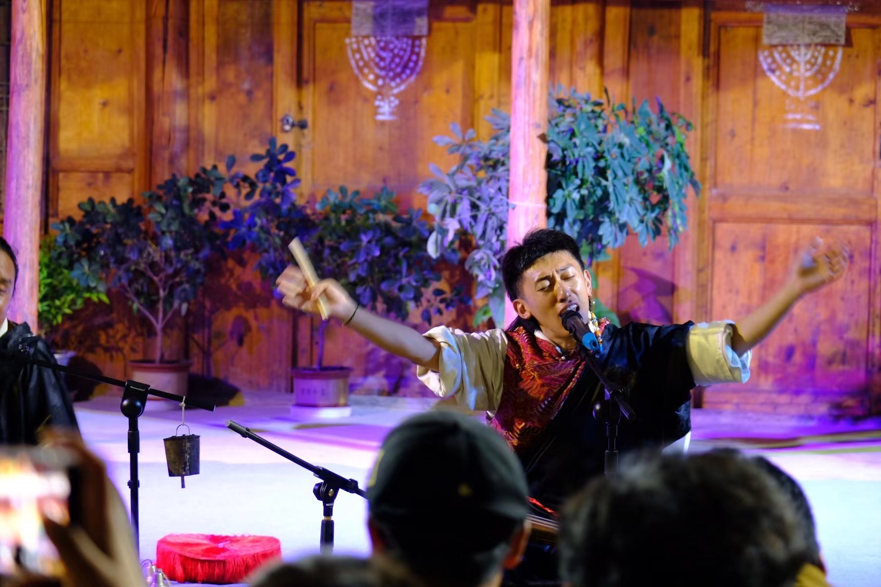 開幕儀式當(dāng)晚,為期三天的古院鄉(xiāng)村音樂周邀請(qǐng)到了三組耕耘在中華優(yōu)秀傳統(tǒng)音樂領(lǐng)域的青年藝術(shù)家。古院落作為獨(dú)特的舞臺(tái)空間,迎接了一場(chǎng)場(chǎng)別開生面的音樂聚會(huì)。