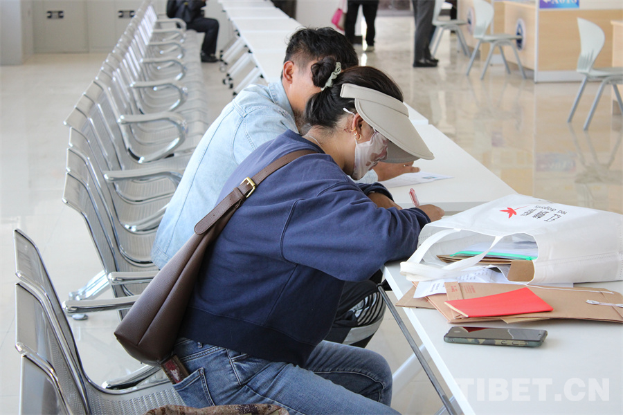 招聘會現(xiàn)場設(shè)有咨詢區(qū)、面試區(qū)及休息區(qū),提供一站式求職服務(wù)。會場內(nèi)的一塊大屏幕吸引了很多求職者的目光,工作人員介紹道:“屏幕滾動展示陜西省、河北省的援藏崗位。我們是鼓勵區(qū)外就業(yè)的,有補貼政策。為爭取這些崗位,我們積極主動與河北省、陜西省對接,通過回訪兩省三企等方式降低崗位招入要求,進一步增加崗位匹配度?!?/p>