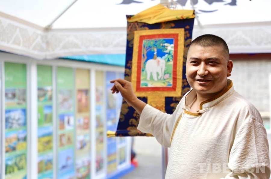 活動(dòng)結(jié)束后,扎西尖措接受了記者的采訪。他說:“唐卡作為一種獨(dú)具青藏高原特色的繪畫藝術(shù),在千百年的繼承和發(fā)展中,不斷借鑒和吸收周邊各民族的文化藝術(shù)精華,經(jīng)過漫長的發(fā)展過程,逐漸形成了眾多異彩紛呈的風(fēng)格流派,呈現(xiàn)出多姿多彩的風(fēng)貌特征,并以其龐大的內(nèi)容體系,獨(dú)特的藝術(shù)表現(xiàn)形式,非凡的工藝水平在我國乃至世界藝術(shù)之林中熠熠生輝。如今隨著時(shí)代的進(jìn)步,唐卡不僅僅限于宗教文化,更是民間的文化藝術(shù)。唐卡繪畫主題既有守正也有創(chuàng)新,有謳歌新時(shí)代的題材、也有禮贊廣大人民群眾的圖景。不拘泥于宗教為主的傳統(tǒng)題材。