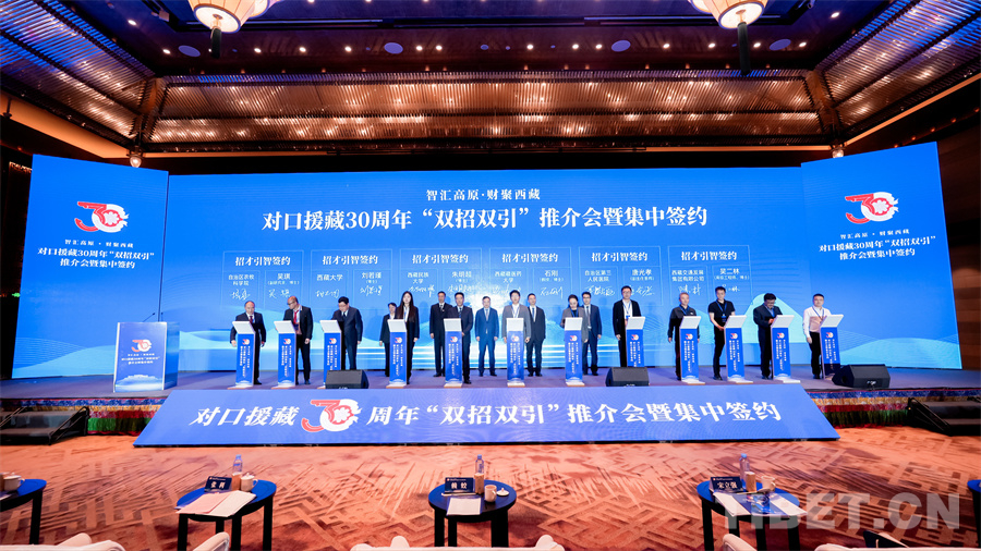本次推介會(huì)暨集中簽約援藏招商引資項(xiàng)目18個(gè)、協(xié)議投資104.07億元,涉及清潔能源、特色農(nóng)牧、綠色工業(yè)、現(xiàn)代服務(wù)等各個(gè)領(lǐng)域;簽約調(diào)入、柔性引進(jìn)高層次人才代表12名,涵蓋教育、高原生態(tài)、醫(yī)藥、農(nóng)牧等各個(gè)方面,將為西藏經(jīng)濟(jì)社會(huì)高質(zhì)量發(fā)展注入新的活力。