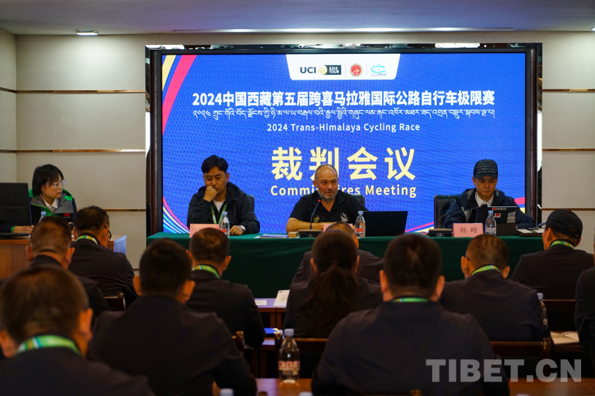 圖為托尼·安東尼在2024中國西藏第五屆跨喜馬拉雅國際公路自行車極限賽裁判會(huì)議上講話 攝影:趙振宇