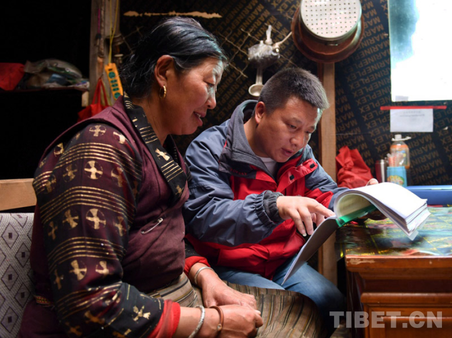 圖為山南市社保工作人員在玉麥鄉(xiāng)玉麥村村民央宗家中進行社保信息補充登記,普及社保政策