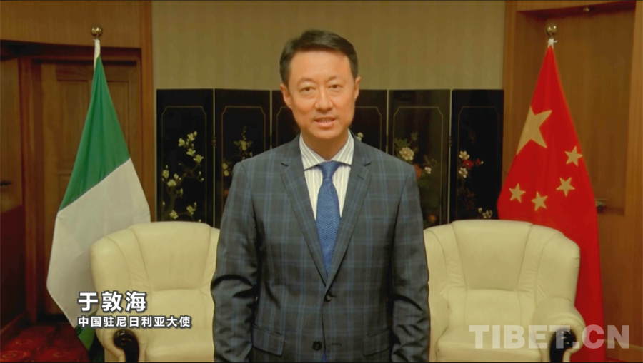 圖為中國(guó)駐尼日利亞大使于敦海通過(guò)VCR致辭