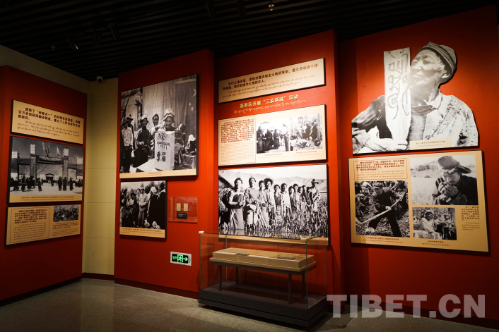 “西藏百萬農(nóng)奴解放紀念館日喀則分館”面積1165平方米,在西藏百萬農(nóng)奴解放紀念館展陳腳本的基礎(chǔ)上,適當(dāng)融入了發(fā)生在日喀則大地上的民主改革等重大歷史事件,特別是融入了黨的十八大以來日喀則發(fā)展成就等內(nèi)容。展廳采用幻影成像技術(shù),生動再現(xiàn)“桑登分得土地”“桑登乞討圖”等新舊對比場景,全面集中反映了中國共產(chǎn)黨帶領(lǐng)西藏各族人民進行偉大民主改革,百萬農(nóng)奴翻身獲得解放的偉大歷史變革。