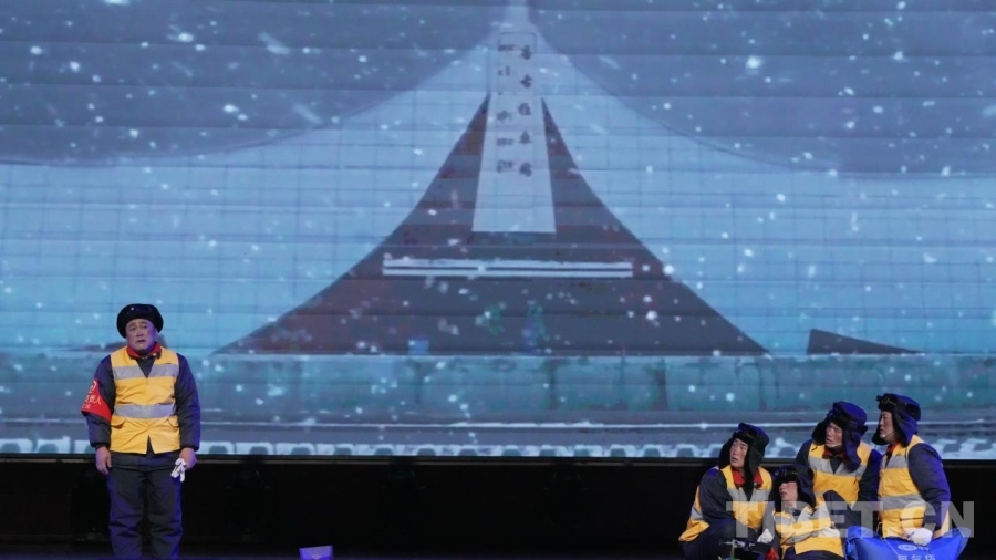 報告會主要以勞模、先進典型、工匠等元素為創(chuàng)作題材,分為“鏖戰(zhàn)昆侖育精神”“歲月如歌寫傳奇”“風雨同舟堅守路”“一枝一葉總關情”“奔跑追夢向復興”“擊鼓催征再出發(fā)”六個章節(jié),主持人聲情并茂地講述著修建青藏鐵路的光輝歷史和筑路工人克服種種艱難險阻的奮斗故事,期間通過穿插情景劇《豐碑》《雪戰(zhàn)風火山》和歌曲《天路》《青藏線上來安家》以及詩朗誦《我們的青藏鐵路》等表演,全方位展現了青藏鐵路人“挑戰(zhàn)極限、勇創(chuàng)一流”的青藏鐵路精神。