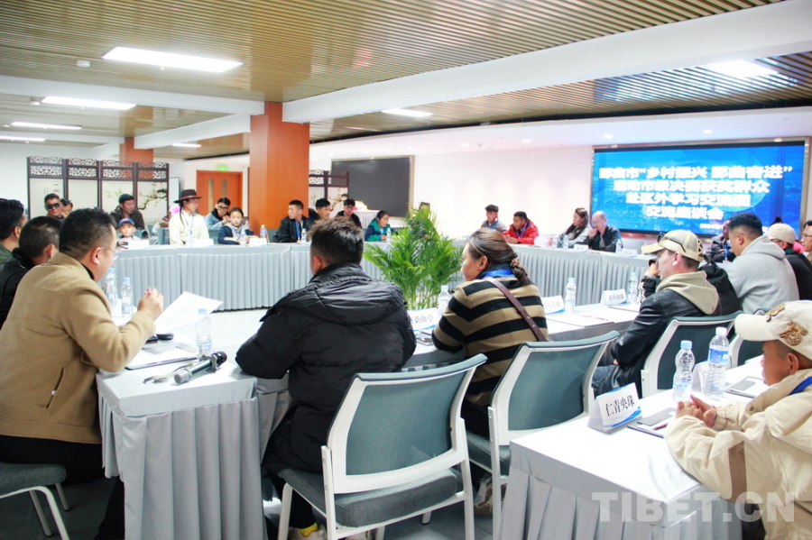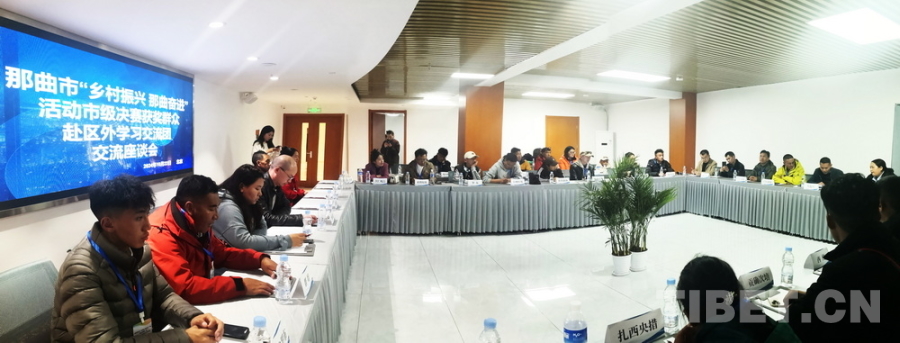 圖為10月22日,來自西藏自治區(qū)那曲市第三屆“鄉(xiāng)村振興 那曲奮進”活動市級決賽第一名獲獎群眾代表區(qū)外學(xué)習(xí)交流團抵達住地后,與中國藏學(xué)研究中心專家們進行交流座談 攝影:劉莉