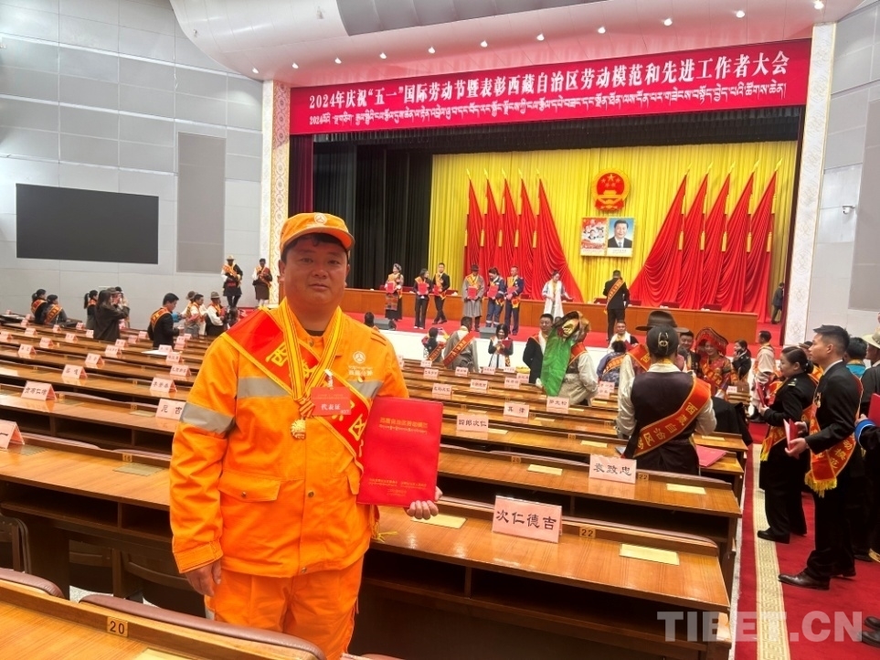 圖為覃春獲得西藏自治區(qū)勞動(dòng)模范獎(jiǎng)?wù)隆?/p>