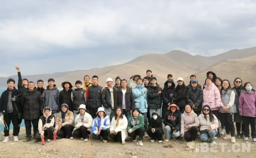 圖為張艾平帶領(lǐng)學(xué)生在羊卓雍錯研學(xué)